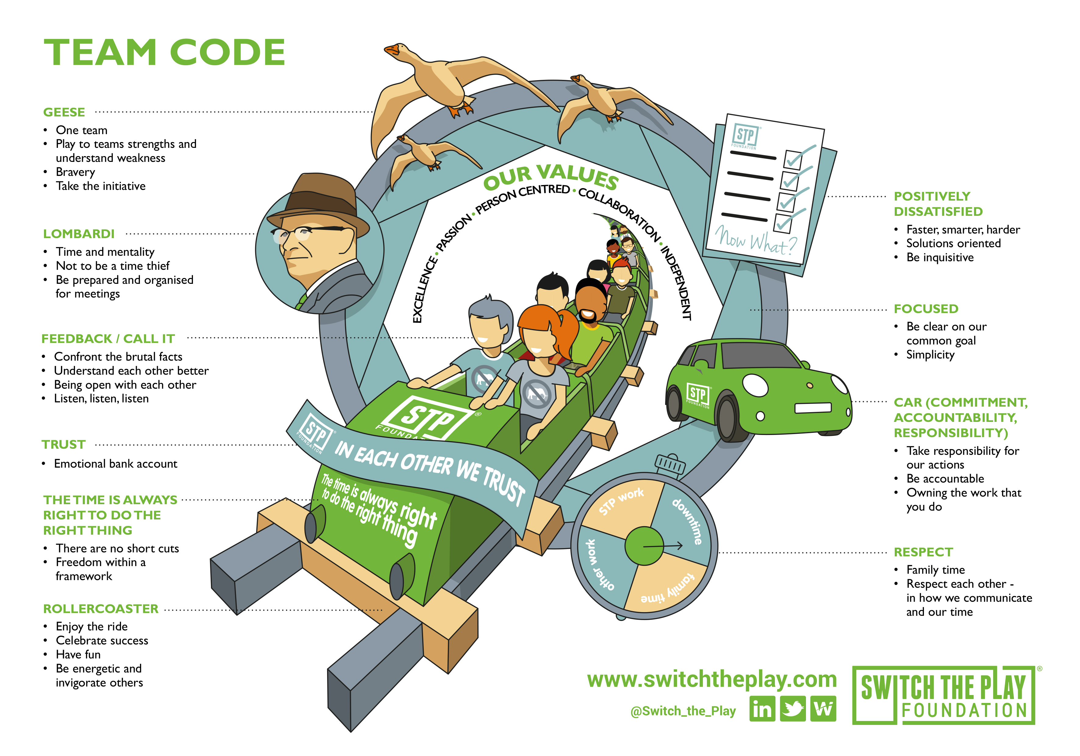 It is through living our Team Code that helps us ensure our values are continuously referred to and met. You can see how we operate in the image below.